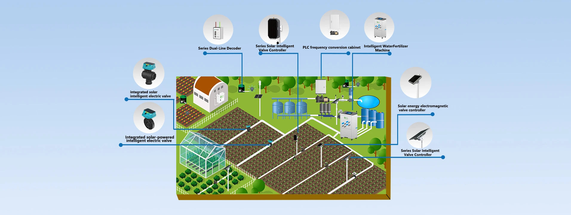 Integrated Solar & Valve Control Say goodbye to complex wiring. Our Integrated Solar units combine power generation with actuation, offering a "plug-and-play" solution for off-grid irrigation.